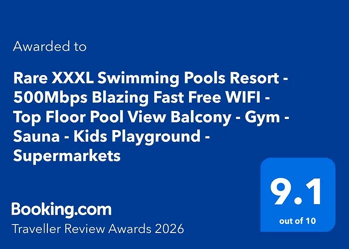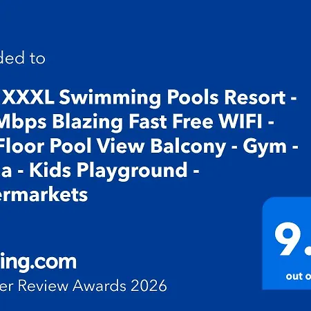 Il Rare Xxxl Swimming Pools Resort - 500Mbps Blazing Fast Free Wifi - Top Floor Pool View Balcony - Gym - Sauna - Kids Playground - Supermarkets offre un patio, un balcone e una zona spogliatoio, oltre a comfort come un impianto di climatizzazione. Quest'appartamento ha 2 camere da letto. La struttura dispone anche di 2 bagni. Inoltre, il bagno vanta asciugacapelli e asciugamani.